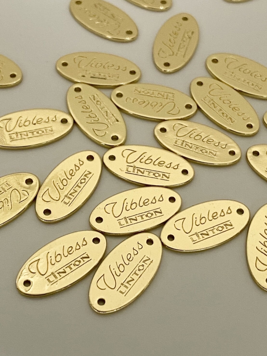 Viblessは、株式会社リントンジャパンを通じて、リントン社よりロゴやタグの使用を認められています。そのため、アイテムによってはリントン織りネームやViblessとのダブルネームをご使用いただけます。(Viblessの開催するライセンスレッスンを御受講いただき、技術と弊社の規約基準に達した講師様は、Vibless本部の管理の元レッスン・販売を許可しております)